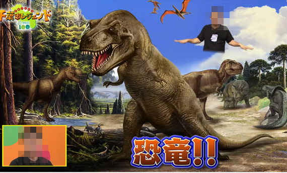 千葉テレビ:「白黒アンジャッシュ」内「千葉市制100周年記念」の特別番組「3分でわかる千葉市レジェンド」内で、お笑いコンビの「ザ・マミィ」さんと合成する用の恐竜がいた自体のイラストになります。